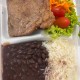 Marmita contendo arroz, feijão, salada e a Proteina Escolhida